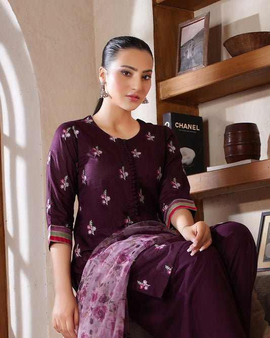 Sold outMaroon Dress (3 PC) Stitched